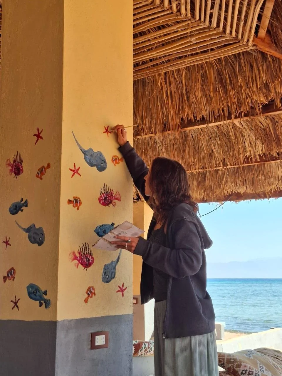 Since the camp is also visited by Bedouin families, we wanted to make the beauty of the underwater world visible, sparking curiosity and conversation among tourists and children, and raising awareness about the reef’s protection.