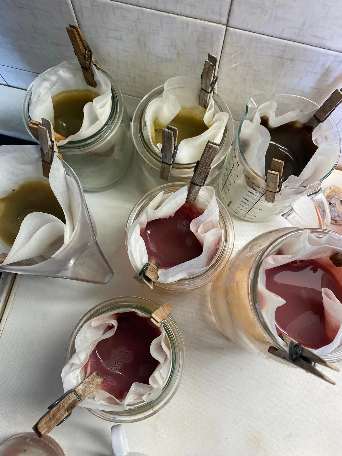 I foraged about 30 different mushrooms in the forests of Styria, then extracted pigments through “laking,” a meticulous process that stabilizes soluble dyes onto an insoluble base, carefully controlling pH, temperature, and chemical agents like alum and wash soda.